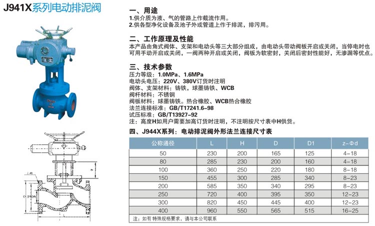 三、電動(dòng)排泥閥技術(shù)參數(shù):