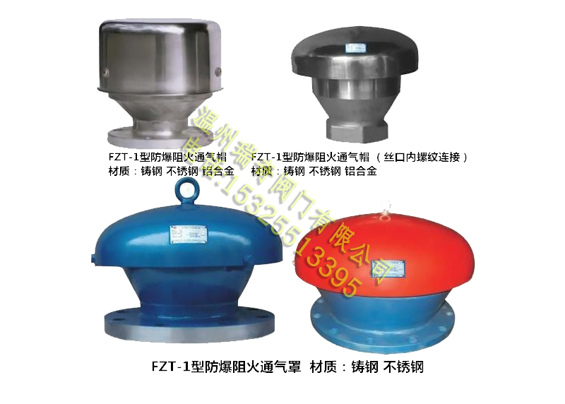 FZT-1型阻火 透氣帽是加油站,小型油罐透氣不可少配套設備,是原設計的更新換代產品。瑞奇阻火透氣 帽連接形式有法蘭連接何螺紋連接兩種。阻火 透氣帽的頂帽采用耐火鋼板表面噴塑,殼體為鑄鋁,阻火芯有不銹鋼波紋板和鋁波紋板兩種,符合GB-5908-86的技術要求。當油罐料膨脹或進油時,即通過阻火芯波紋板向外排氣,當油罐內向外放油時又向罐內吸氣,并阻止一切火源從此通過,確保安全。透氣帽應垂直安裝在油罐的頂部。應經常對透氣帽的波紋板的透氣性進行檢查,保證良好的阻火、透氣性能。檢修時將透氣帽上蓋螺絲擰開,并松開固定阻火芯的螺釘,取出阻火芯,檢查阻火芯是否堵塞,變形或銹蝕。應及時清洗或換阻火芯,每月檢查兩次。