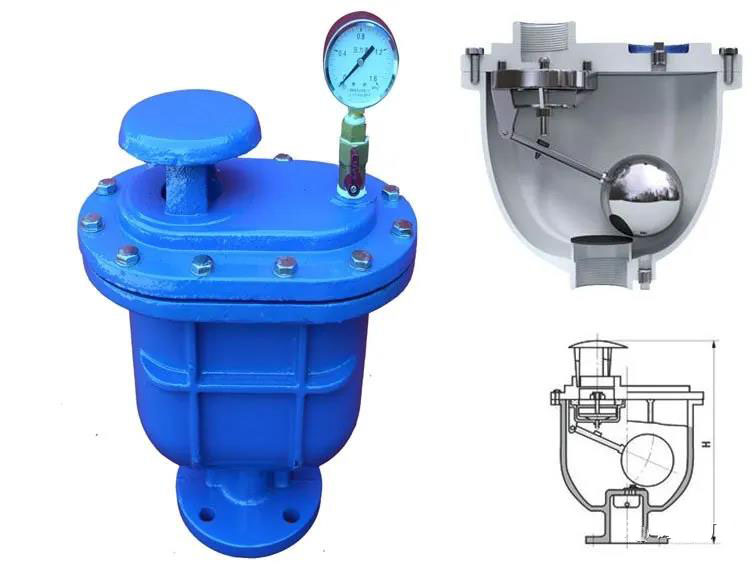 排氣閥作為快速排除管道內氣體的設備,用來提高輸送水設備的效率和保護管道不致變形破裂,是管道的必備之設備。裝設于泵埔出口處或送配水管線中,用以大量排除管道中的集結之空氣,以進水管及抽水機使用效率,且與管內一旦出現負壓時,此閥能迅速吸入空氣,以保管線因負壓所產生損壞。